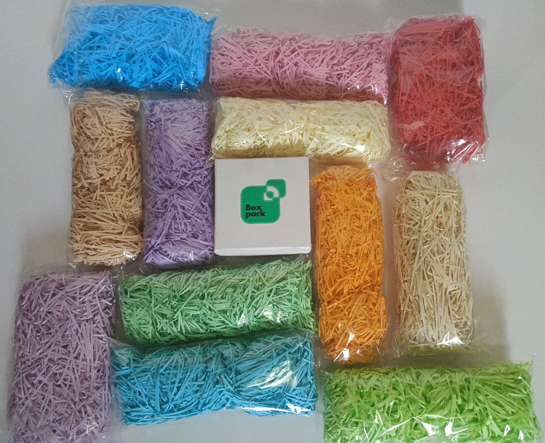 Le Papier Déchiqueté, conditionné en sachets de 30g, est disponible en plusieurs couleurs adaptées à diverses applications d’emballage. Sa texture légère assure un excellent calage tout en ajoutant une dimension esthétique personnalisable, renforçant ainsi la présentation et la protection des produits.